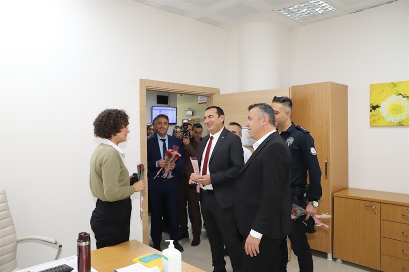Etkinlik kapsamında kadınlara günün anlam ve önemini vurgulamak amacıyla gül takdim edildi.