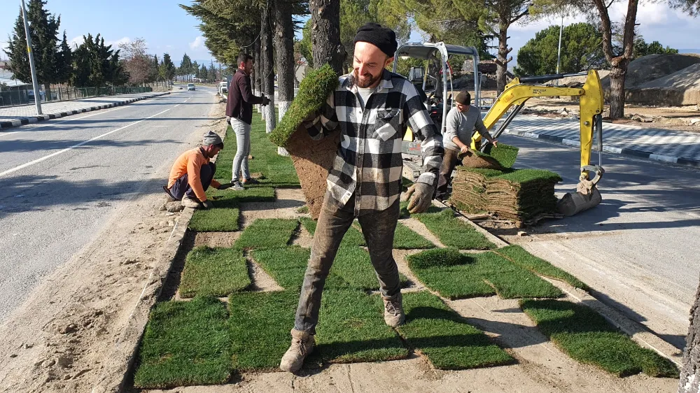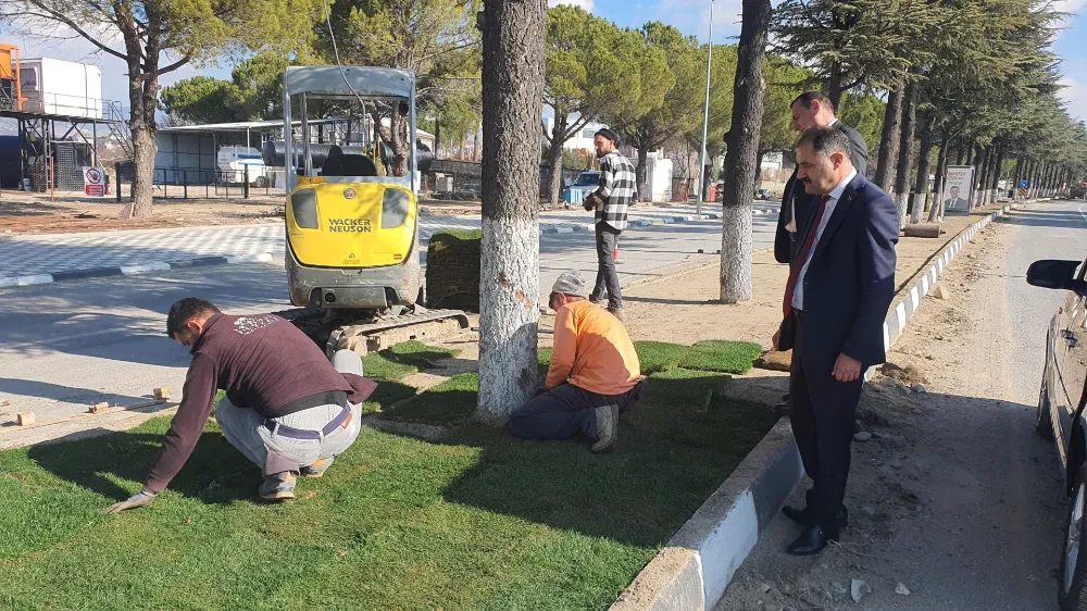 Belediye Baş kanı Erkan KARA ve Başkan Yardımcısı İsmail Hakkı GÜL’de Nurullah Doğruel bulvarına giderek refüj çimlendirme çalışmalarını yerinde inceleyerek ekiplerden bilgi aldılar.