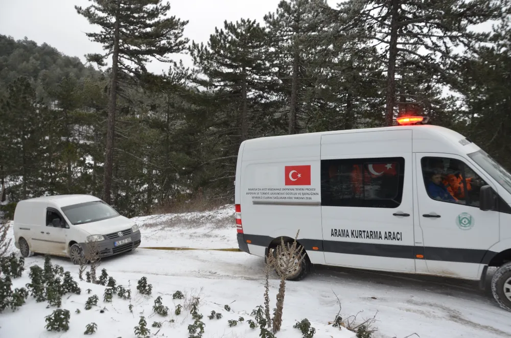 İhbar üzerine harekete geçen 5 kişilik Demirci Bele-diyesi Arama Kurtarma Timi, 45 kilometre mesafede zorlu arazi ve olumsuz hava koşullarına rağmen bölgeye ulaştı.