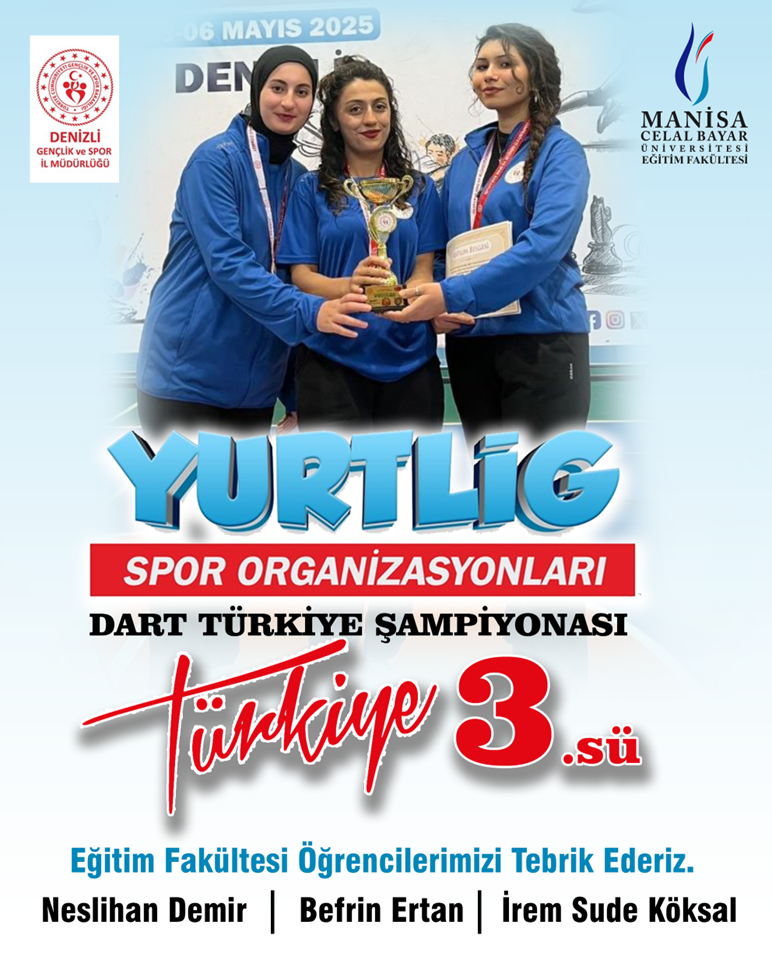 Manisa Celal Bayar Üniversitesi Demirci Eğitim Fakültesi öğrencileri, Gençlik ve Spor Bakanlığı Kredi ve Yurtlar Genel Müdürlüğü tarafından düzenlenen YURTLİG Türkiye Dart Şampiyo-nası’nda önemli bir başarıya imza attı.