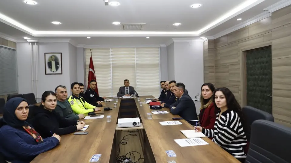 Toplantıya İlçe Jandarma Komutanı Uğurcan ŞAHİN, Emniyet Müdürü Barış KAYAR, Sosyal Hizmet Merkezi Mü-dürü Eyyüp ACAR ile Jandarma, Emniyet ve Sosyal Hizmet Merkezi personelleri katılım sağladı.