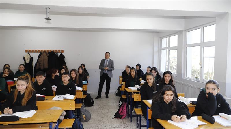 Meslek atölyelerini gezerek öğrencilerin uygulamalı eğitim süreçleri hakkında bilgi alan Kaymakamımız, sınıfları da ziyaret ederek öğrencilerle sohbet etti ve kariyer planlamalarına ilişkin tavsiyelerde bulundu.