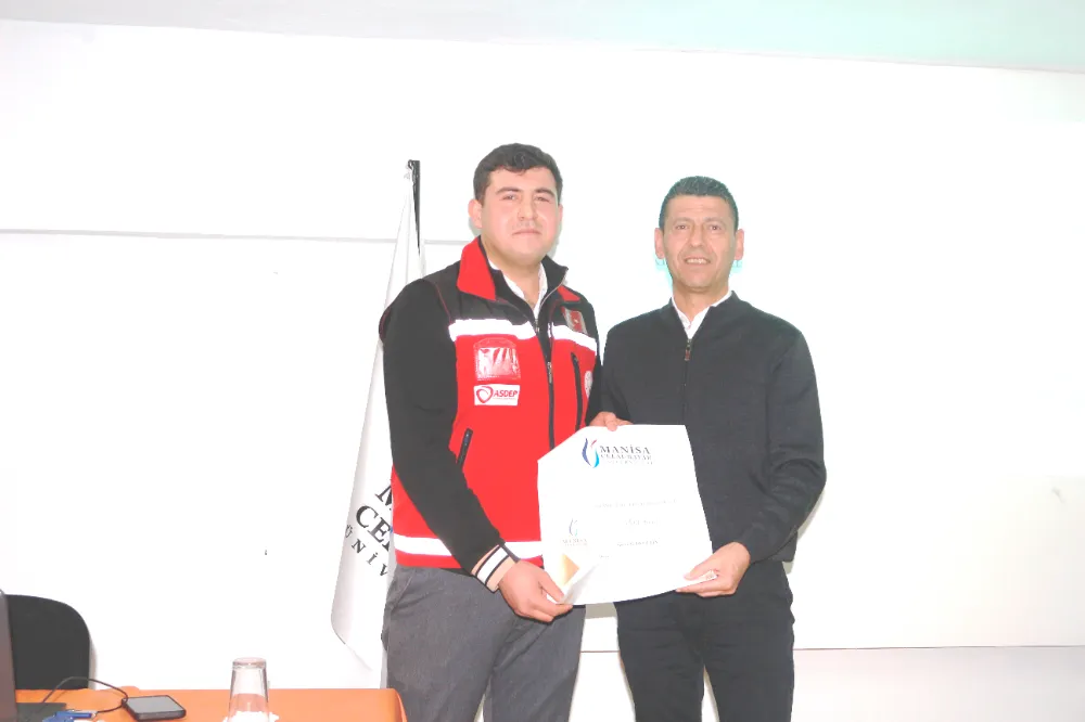 Demirci Meslek Yüksekokulu öğretim elemanlarının da hazır bulunduğu etkinliğin sonunda, Demirci MYO Müdür Yardımcısı Öğr. Gör. Deniz KARADAĞ tarafından Melih ÇETİN’e teşekkür edilerek teşekkür belgesi takdim edildi.