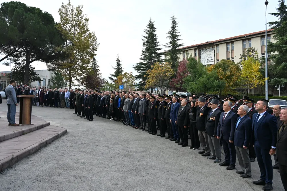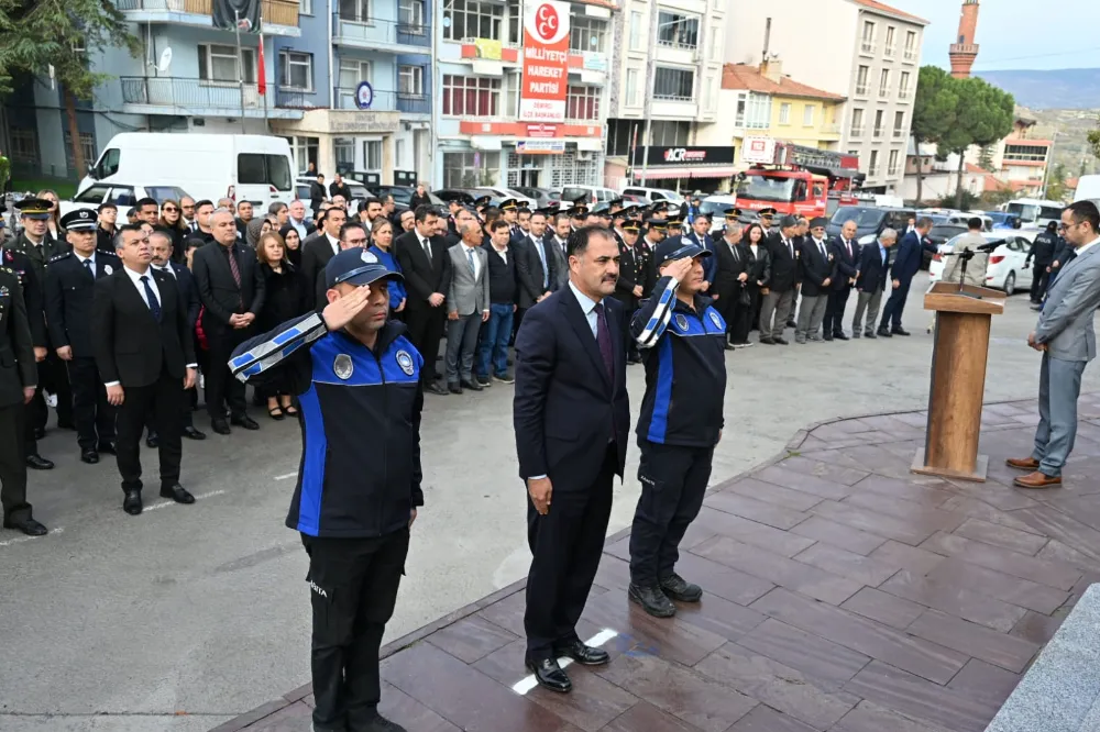 Kaymakamlık, Garnizon Komutanlığı, Belediye Başkanlığı, siyasi partiler ve sivil toplum kuruluşları tarafından Atatürk Anıtı’na çelenkler sunuldu.
