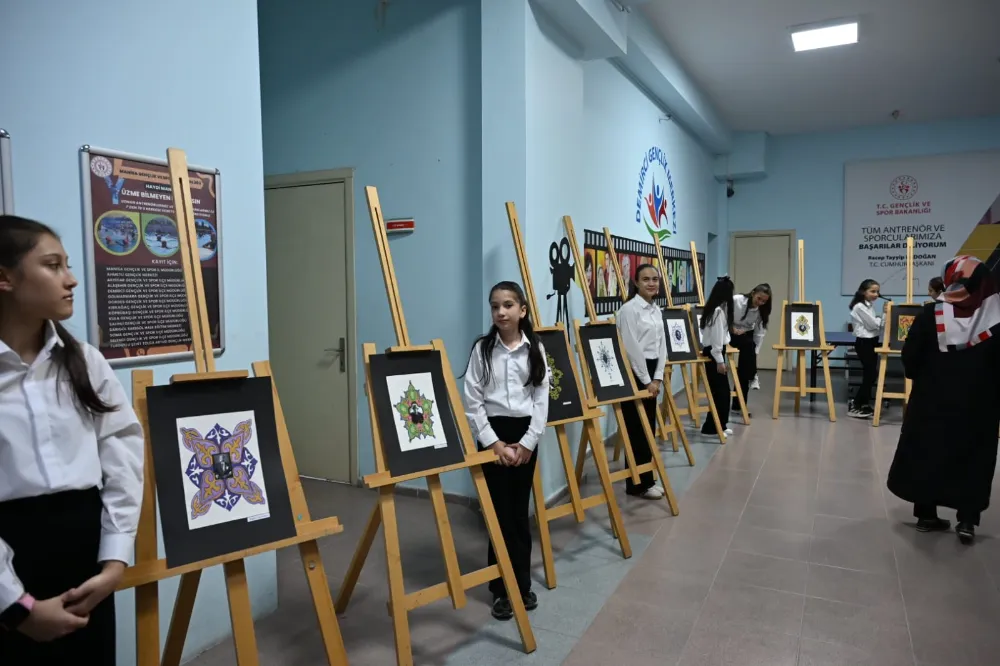 Ayrıca Makine Kimya Hüseyin Çamtepe Ortaokulu öğrencileri tarafından hazırlanan “Tezhiplerle Atatürk Sergisi” katılımcıların beğenisine sunuldu.