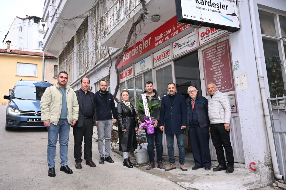 Başkan Erkan KARA; “İlçemizde 1957 Yılından beri Matbaacılık ve Gazetecilik alanında himmet veren Kardeşler Matbaası ve Gazetecilik işyerine ziyarette bulunduk. HALIKENT Bölge gazetemizin Türkiye Basın Federasyonu tarafından “YILIN YEREL GAZETESİ” seçilmesinden dolayıda tebrik ettik” Dedi.