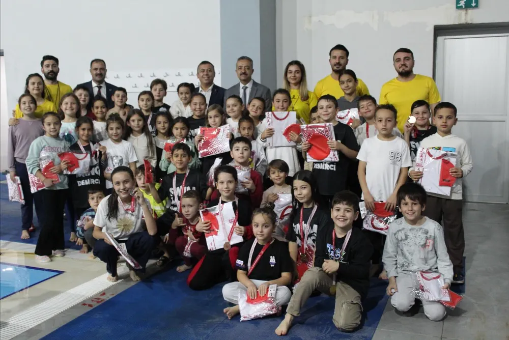 Minik sporcularımızın sergilediği azim, özgüven ve sportmenlik izleyenlere unutulmaz anlar yaşattı. Cumhuriyetimizin 102. yılına yakışır şekilde düzenlenen yarışmalarda küçük yaşlarına rağmen büyük bir performans ortaya koyan yüzücülerimiz, alkışlarla desteklendi.
