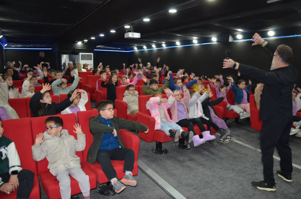 İlçenin farklı noktalarında kurulan mobil sinemada çocuklar, hem sinema izleme heye- canını yaşadı hem de eğlenceli bir gösteriye tanıklık etti.