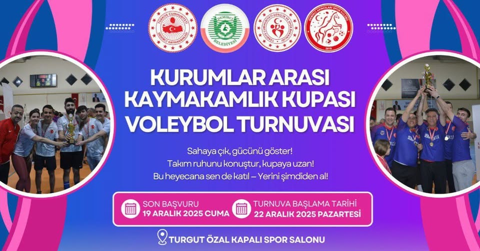 İlçemizde uzun kış gecelerini sporun enerjisiyle değerlendirmek ve toplumda aktif yaşam kültürünü güçlendirmek amacıyla KURUMLAR ARASI KAYMAKAMLIK KUPASI VOLEYBOL TURNUVASI başlıyor!