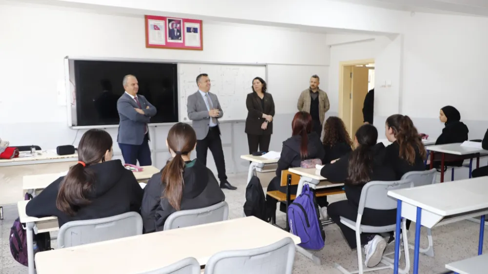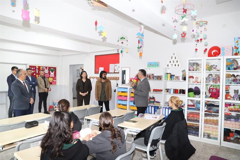 Meslek atölyelerini gezerek öğrencilerin uygulamalı eğitim süreçleri hakkında bilgi alan Kaymakamımız, sınıfları da ziyaret ederek öğrencilerle sohbet etti ve kariyer planlamalarına ilişkin tavsiyelerde bulundu.