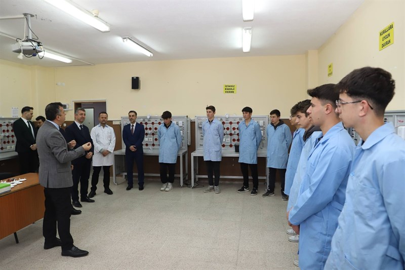 Atölyelerde verilen mesleki eğitimler hakkında öğretmenler ve okul idaresinden bilgi alan Kaymakamımız, öğrencilere başarılar dileyerek emeği geçenlere teşekkür etti.