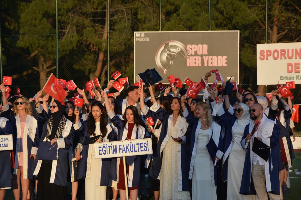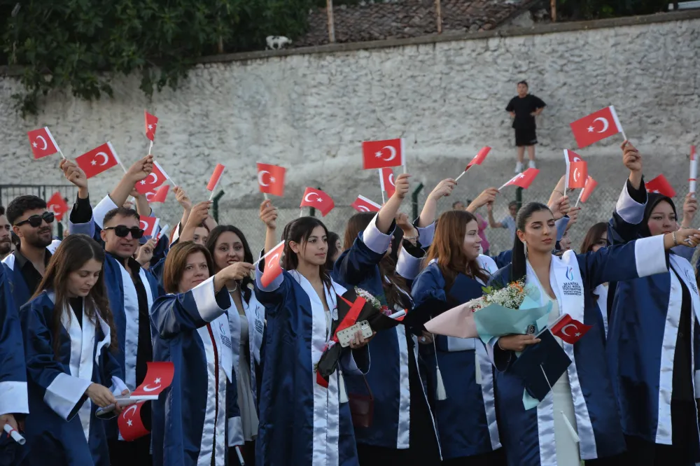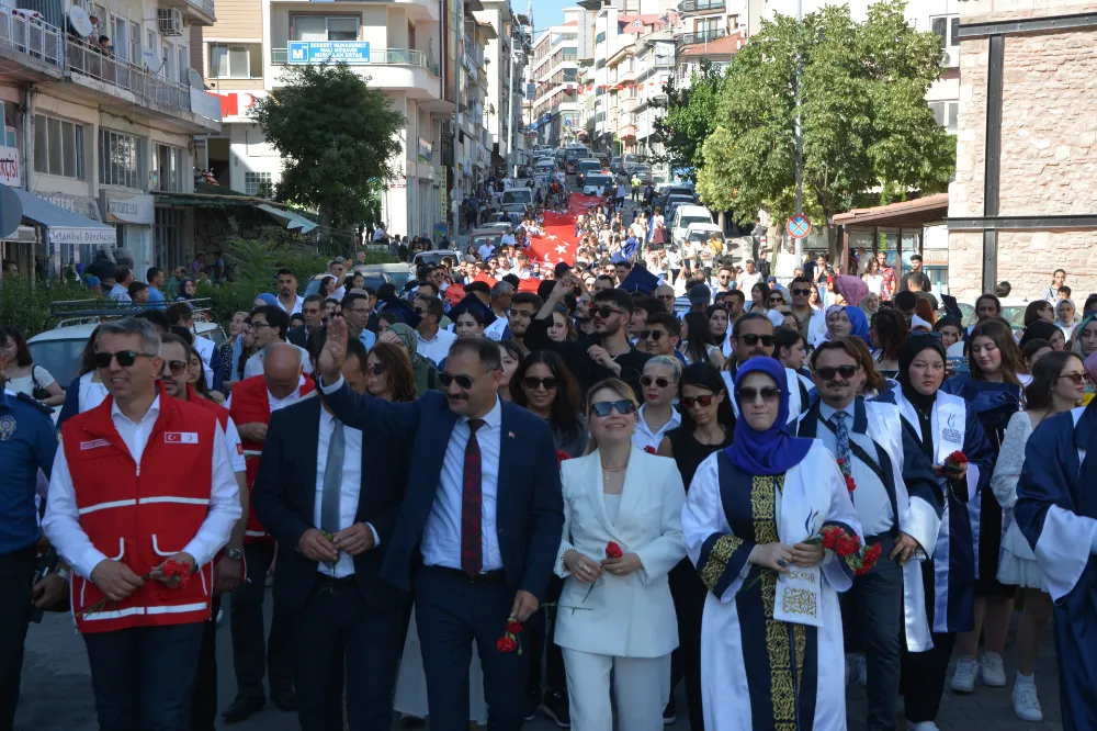 Mezuniyet yürüyüşüne bu yıl mezun olacak 580 öğrencinin yanı sıra Belediye Başkanı Erkan KARA, eşi Nermin KARA, Rektör Prof. Rana Kİ-BAR, İlçe protokolü, öğrenciler ve aileleri katıldı.