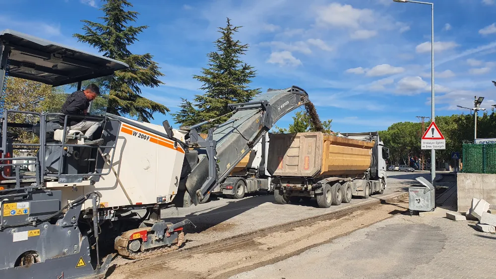 Diğer yandan yüklenici firma tarafından Halk Eğitimi Merkezi Müdürlüğü önünden sıtma kavşağına kadar sıcak asfalt çalışmaları kapsamında mevcut asfaltın kazım çalışmalarına da başlandı.