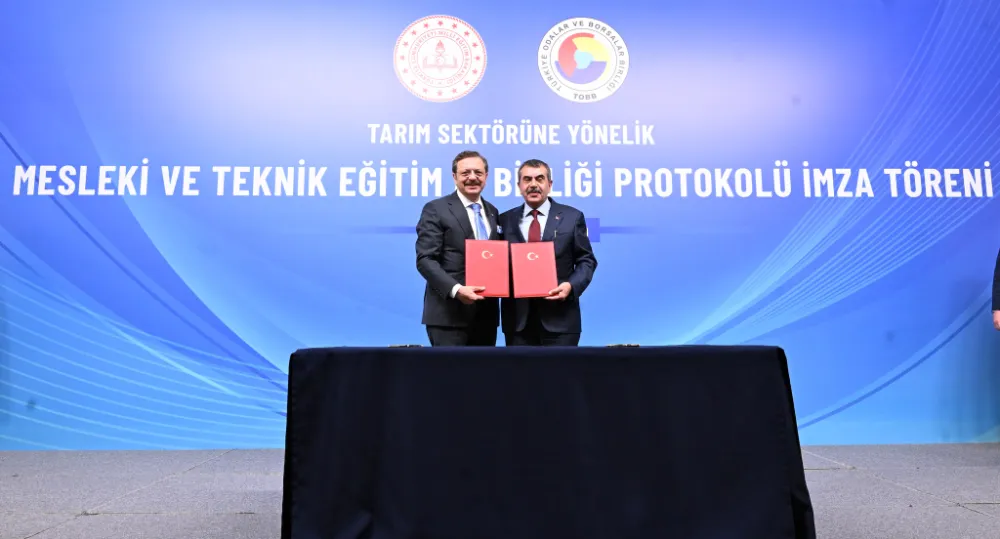 Milli Eğitim Bakanı Yusuf TEKİN ve TOBB Başkanı Rifat HİSARCIKLIOĞLU, tarım sektörünün nitelikli insan kaynağı ihtiyacını karşılamak amacıyla "Tarım Sektörüne Yönelik Mesleki ve Teknik Eğitim İş Birliği Protokolü"nü imzaladı.