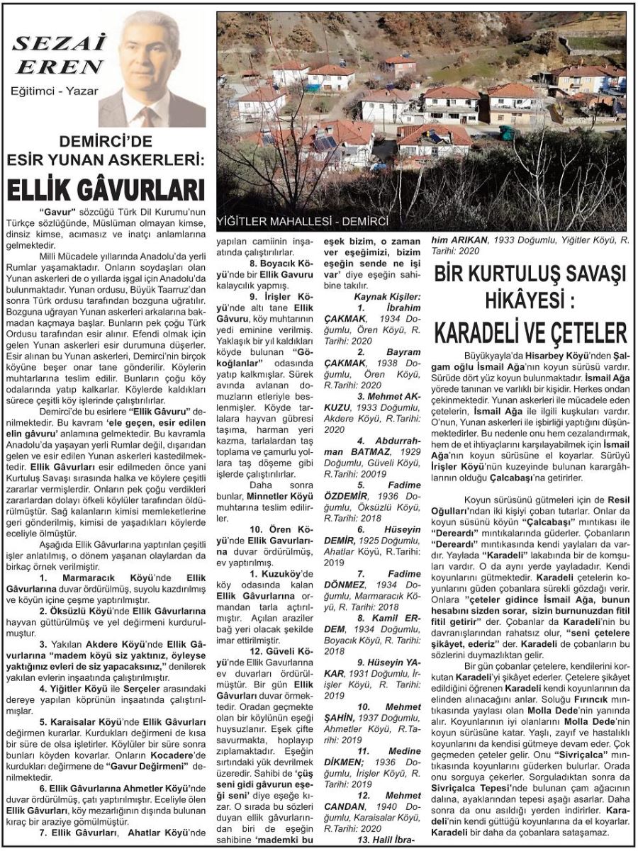 DEMİRCİ'DE ESİR YUNAN ASKERLERİ: ELLİK GAVURLARI