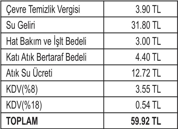 Şimdi, tabloya dikkatle bakalım. 10 ton suyun bedeli 31.80 TL. Bu su, hangi su? Yeni Gördes kurulduğundan beri, Bodamas kuyularından gelen su. Enerji ile geliyor. Bir maliyeti var elbette. Demek ki bunlar hesaplanarak bir tarife belirlenmiş. Tonu 3,18 TL’ye geliyor.