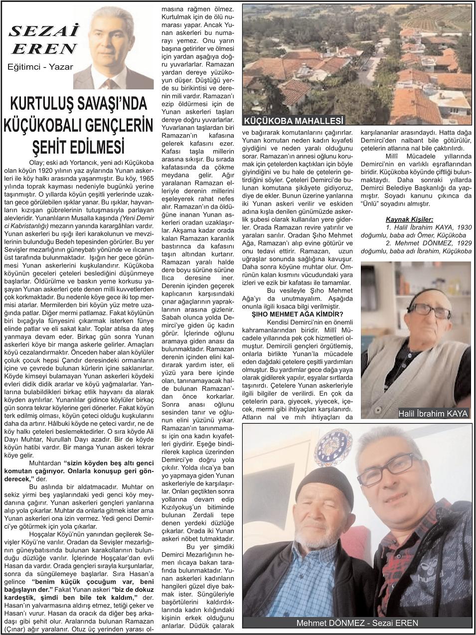 KURTULUŞ SAVAŞI’NDA KÜÇÜKOBALI GENÇLERİN ŞEHİT EDİLMESİ