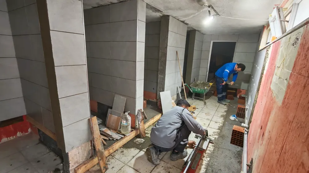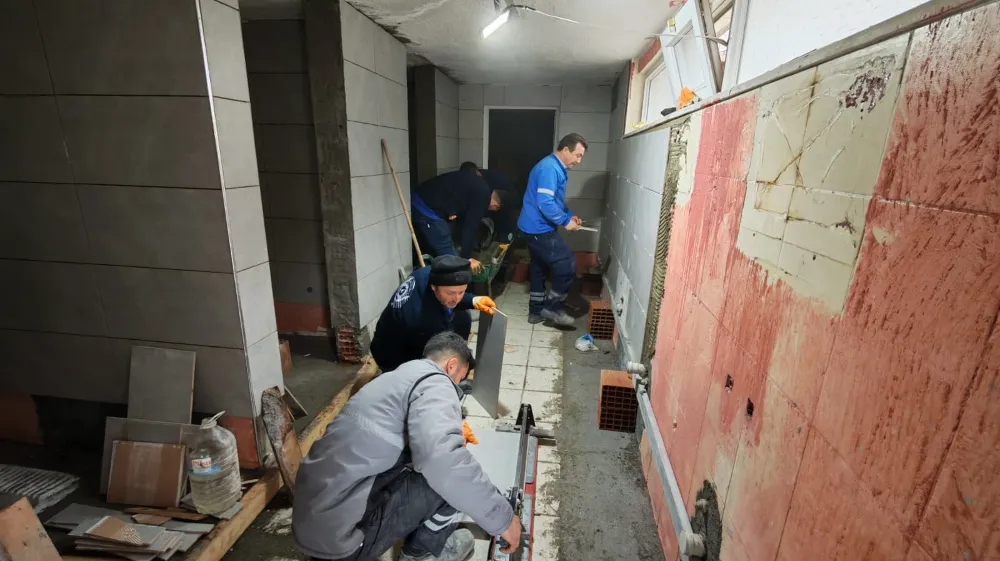 Çalışmalar kapsamında tuvalet duvarları, lavabolar ve zemin döşemeleri tamamen yenilenirken, eskiyen ve kullanılamaz durumda olan su boruları da değiştirilerek altyapı güçlendiriliyor.