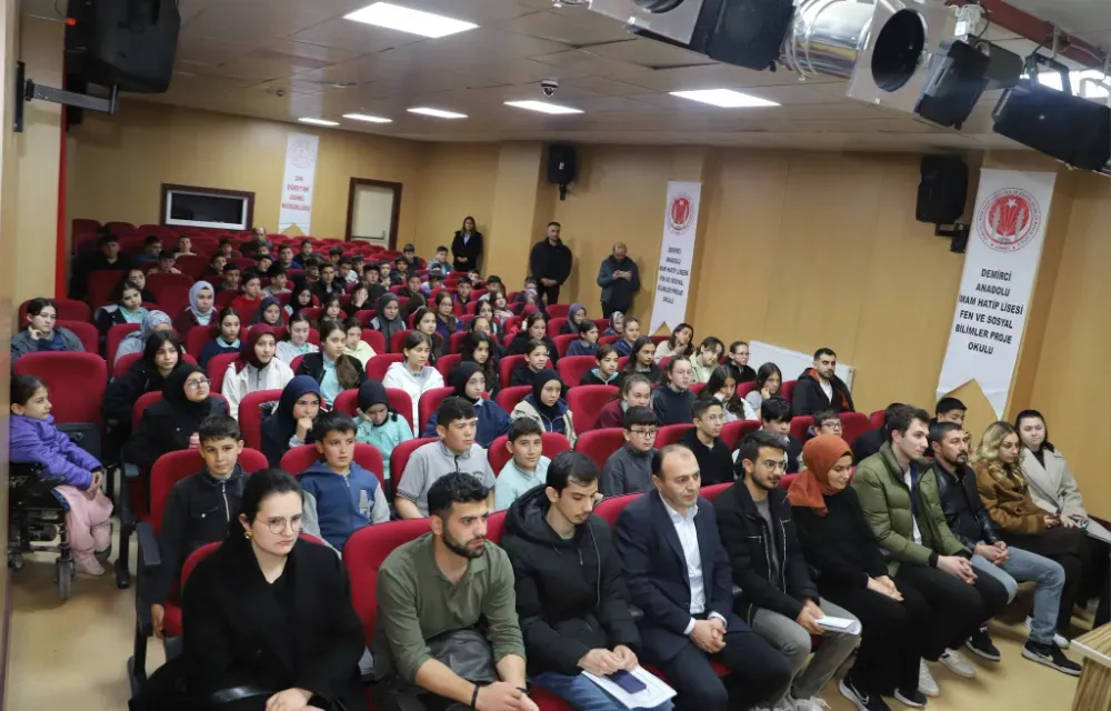 Demirci Anadolu İmam Hatip Lisesi Fen ve Sosyal Bilimler Proje Okulu Konferans Salonunda düzenlenen programda; geleceğin meslek trendleri, hedef belirlemenin önemi, doğru kariyer plânlaması, kişisel gelişim ve öğrencilerin yaşamlarına yön verecek kritik tercihler üzerine kapsamlı bir sohbet gerçekleştirildi.