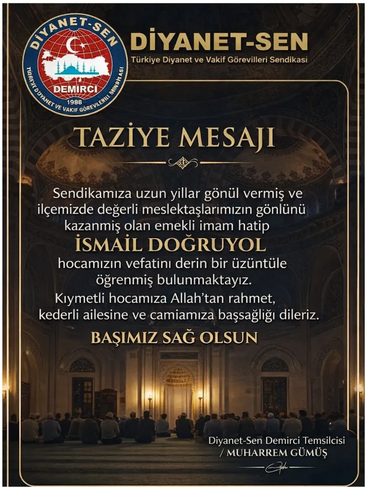 DİYANET-SEN TAZİYE MESAJI