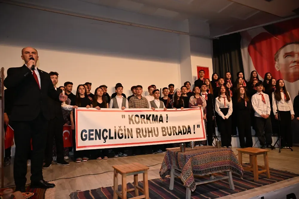 Programda İstiklâl Marşı’mızın seslendirme videosu ve “ Korkma! Gençliğin Ruhu Burada ” isimli anlatım ve canlandırma gösterileri sergilendi.