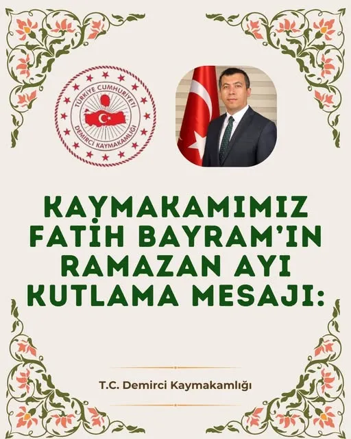 Demirci’mizde her zaman var olan dayanışma ve yardımlaşma ruhunun bu mübarek ayda daha da güçleneceğine yürekten inanıyorum. Ramazan’ın getirdiği manevi iklimin ilçemize huzur, sağlık, bereket ve kardeşlik getirmesini temenni ediyorum.