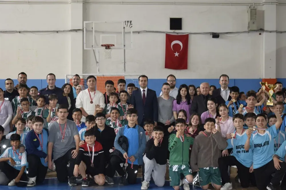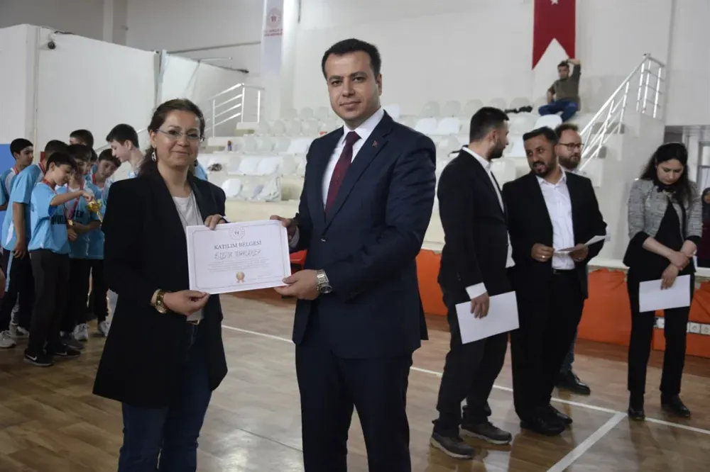 Kaymakam Bilal DOĞAN, 23 Nisan Ulusal Egemenlik ve Çocuk Bayramı kutlamaları çerçevesinde ortaokullar arası düzenlenen futsal ve voleybol branşlarında dereceye giren takım ve sporcular için organize edilen madalya ve ödül töreni programına katıldı.