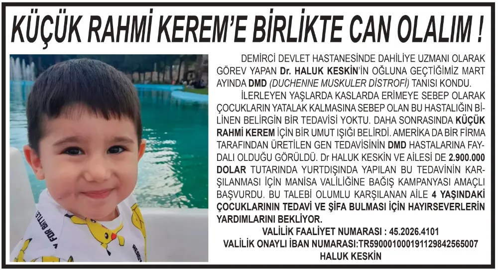 DEMİRCİ’DEN YÜKSELEN BİR DUA: RAHMİ KEREM İÇİN UMUT OLALIM