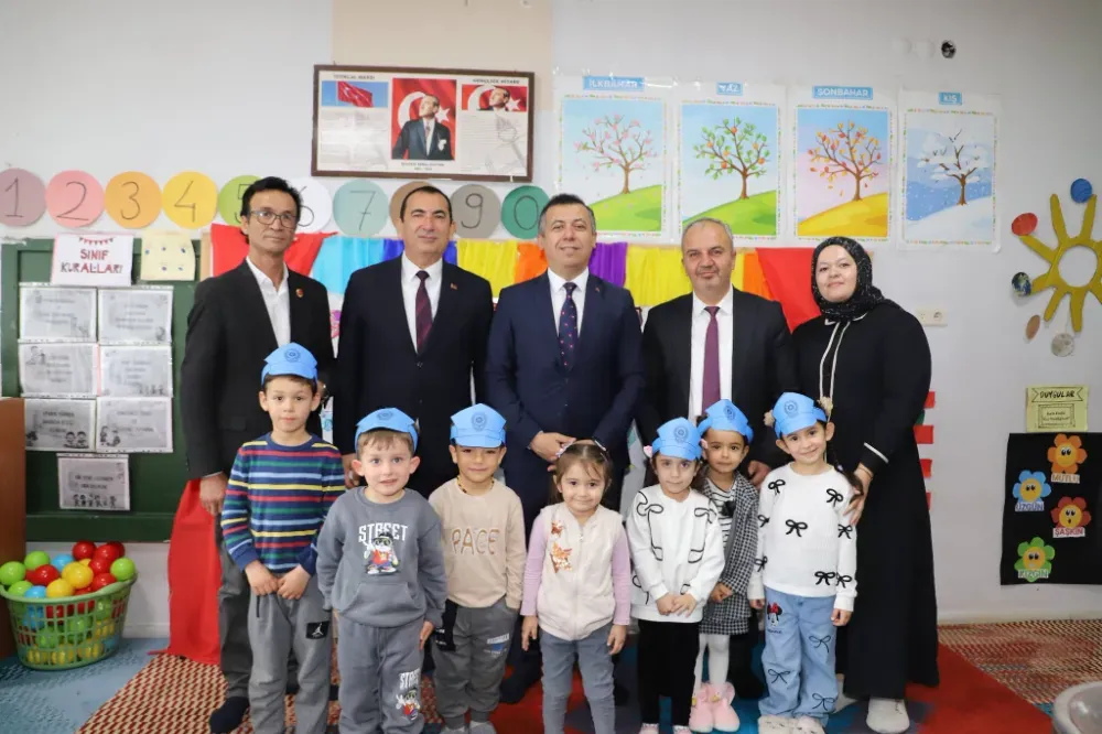 Ziyaret sırasında sınıfları gezerek öğrencilerle bir araya gelen Kaymakamımız, okulun fiziki durumu, eğitim ortamları ve yürütülen faaliyetler hakkında idarecilerden bilgi aldı.