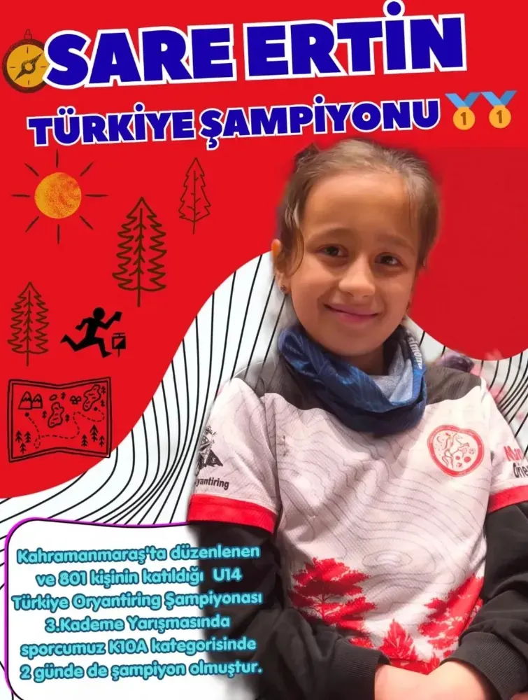 Kahramanmaraş'ta 28 - 29 Mart tarihlerinde düzenlenen 14 Yaş ve Altı Türkiye Oryantiring Şampiyonası 3. Kademe yarışmasında sporcularımızdan;