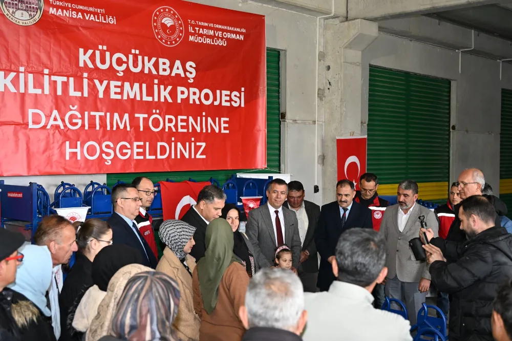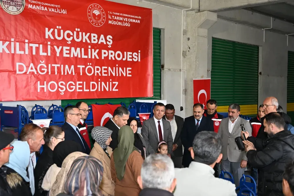 Demirci Tarım Ürünleri Merkezi’nde düzenlenen dağıtım törenine Kaymakamımız Fatih BAYRAM, Belediye Başkanı Erkan KARA, Manisa İl Tarım ve Orman Müdürü Mehmet KARAYILAN, İlçe Tarım ve Orman Müdürü Faruk ŞENYURT ve hak sahibi üreticiler katıldı.