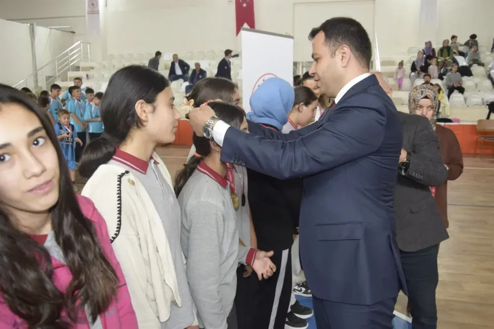 Kaymakam Bilal DOĞAN, 23 Nisan Ulusal Egemenlik ve Çocuk Bayramı kutlamaları çerçevesinde ortaokullar arası düzenlenen futsal ve voleybol branşlarında dereceye giren takım ve sporcular için organize edilen madalya ve ödül töreni programına katıldı.