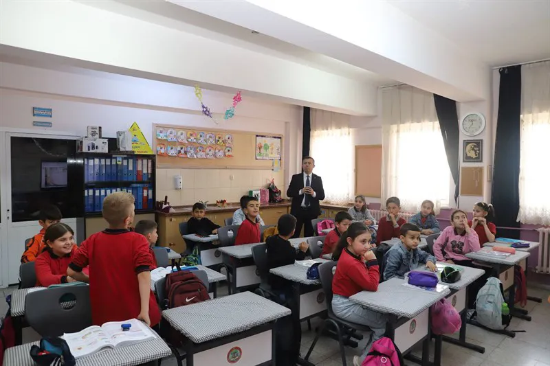 Kaymakamımız Fatih BAYRAM, İlçe Millî Eğitim Müdürü Bilal ÇETİNKAYA ile birlikte Mustafa Zehra Saliha Kul İlkokulu’nu ziyaret etti.