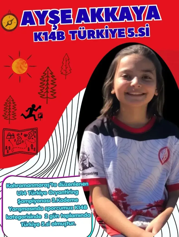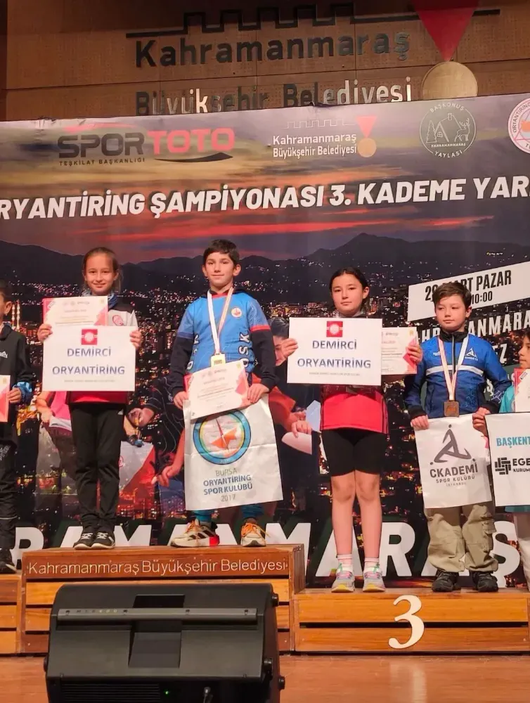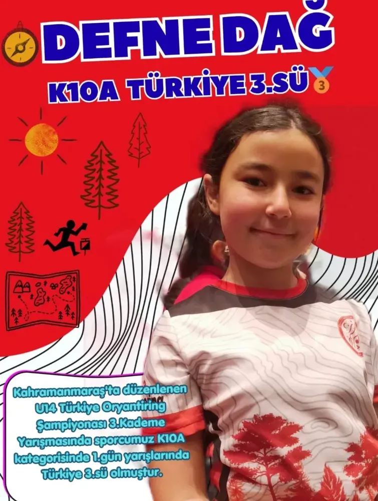 Kahramanmaraş'ta 28 - 29 Mart tarihlerinde düzenlenen 14 Yaş ve Altı Türkiye Oryantiring Şampiyonası 3. Kademe yarışmasında sporcularımızdan;