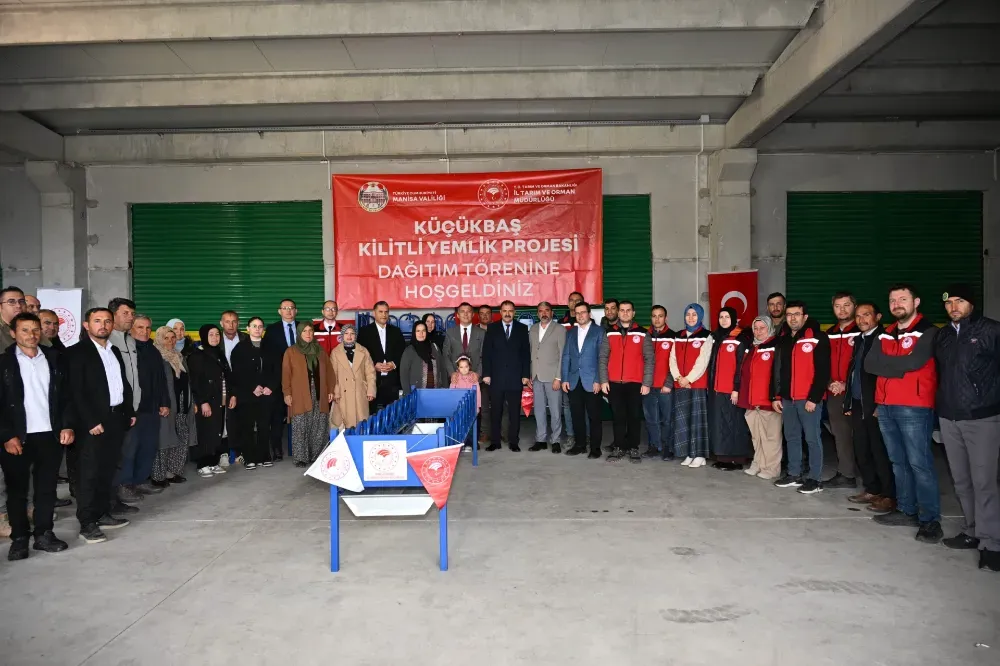 Demirci’de küçükbaş hayvancılığı modernize etmek ve üre- timde verimliliği artırmak amacıyla Tarım ve Orman Bakanlığı tarafından başlatılan proje kap samında, 14 üreticiye %80 hibeli kilitli yemlikleri törenle teslim edildi.